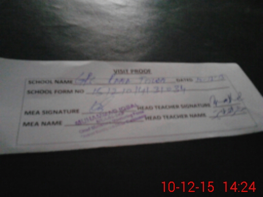| Attendance Register | Head Teacher | MEA with School | Visit Proof |