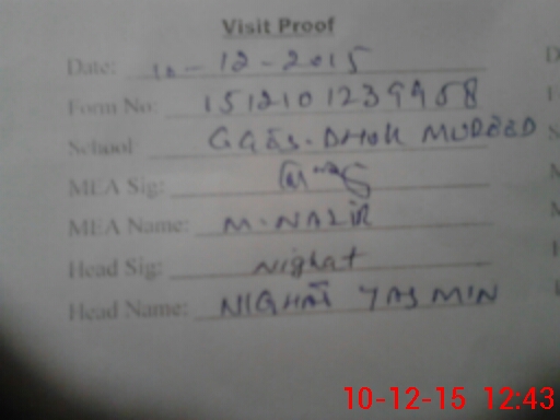 | Certified that this School was Inspected by the Undersigned MEA/DMO Today and the Information Stated Above is as Per Record. | |||||