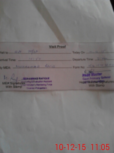 | Attendance Register | Head Teacher | MEA with School | Visit Proof |