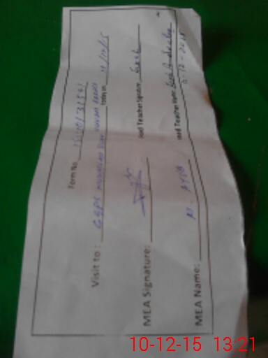 | Monitoring Date: 10-12-2015 | Start Time: 10-12-2015 01:10 PM | End Time: 10-12-2015 01:23 PM | Name of MEA: Mu**** Ay**** Rt**** | |