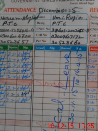 | CNIC | Full Name | Designation | R/C | Absence During Last Calender Month |