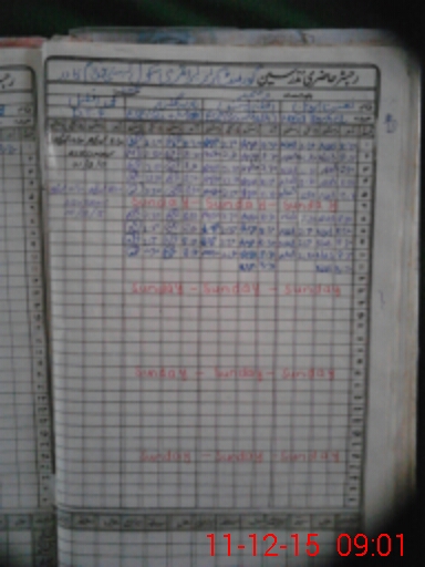 | CNIC | Full Name | Designation | R/C | Absence During Last Calender Month |