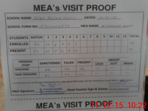 | Certified that this School was Inspected by the Undersigned MEA/DMO Today and the Information Stated Above is as Per Record. | |||||