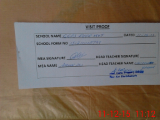 | Attendance Register | Head Teacher | MEA with School | Visit Proof |