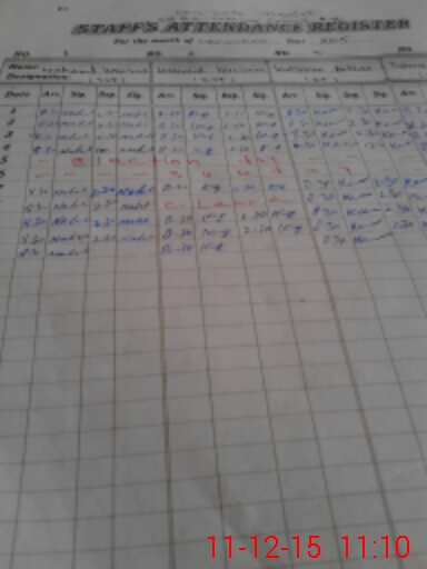 | CNIC | Full Name | Designation | R/C | Absence During Last Calender Month |
