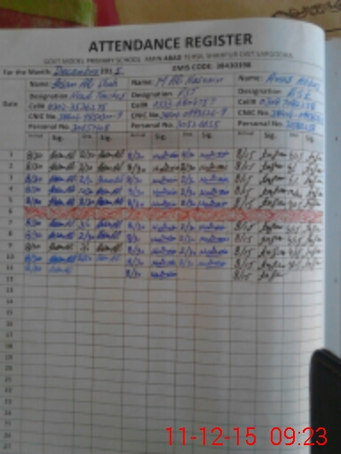 | Name: IH**** AL**** SH**** Designation: (School Headmaster's/Headmistress's) PST Phone/Cell Number: 03**** |