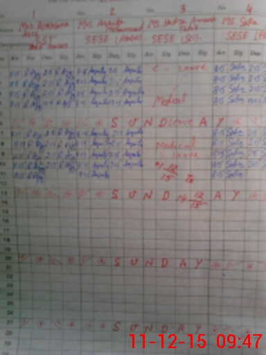 | Leave | Duty | Absent | Maternity | Medical | Ex- Pak |