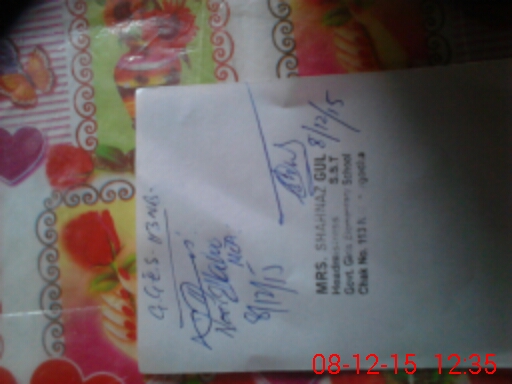 | Name: Zu**** Be**** Designation: (School Headmaster's/Headmistress's) EST ARTS Phone/Cell Number: 03**** |