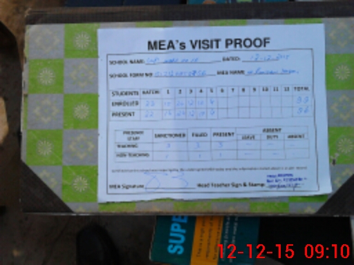 | Attendance Register | Head Teacher | MEA with School | Visit Proof |