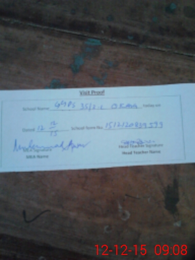 | Attendance Register | Head Teacher | MEA with School | Visit Proof |