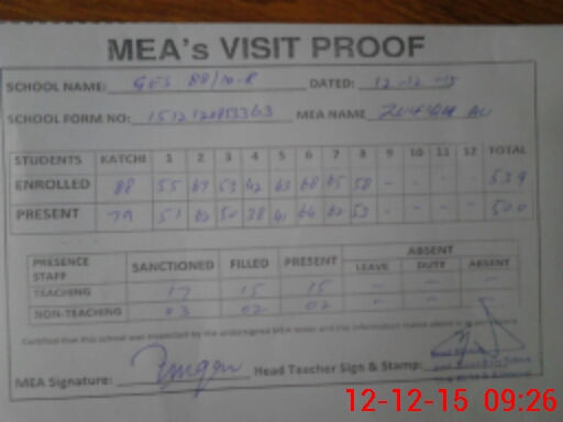 | Certified that this School was Inspected by the Undersigned MEA/DMO Today and the Information Stated Above is as Per Record. | |||||