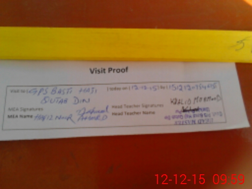 | Attendance Register | Head Teacher | MEA with School | Visit Proof |