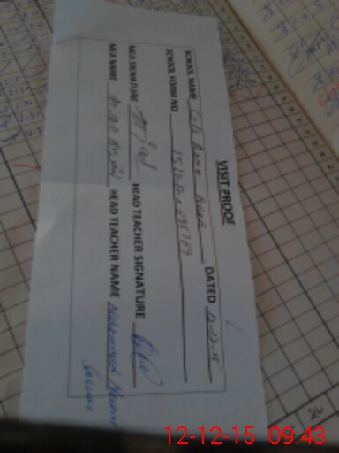 | Attendance Register | Head Teacher | MEA with School | Visit Proof |