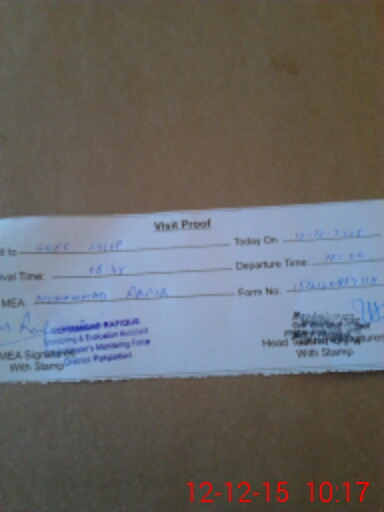 | Monitoring Date: 12-12-2015 | Start Time: 12-12-2015 08:56 AM | End Time: 12-12-2015 10:23 AM | Name of MEA: Mu**** Ra**** | |