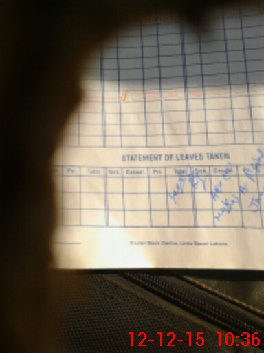 | CNIC | Full Name | Designation | R/C | Absence During Last Calender Month |