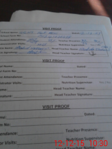 | Attendance Register | Head Teacher | MEA with School | Visit Proof |