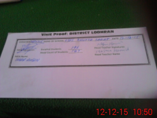 | District: LODHRAN | Tehsil: LODHRAN | Markaz: QURESHI WALA - FEMALE | Level: Middle | |