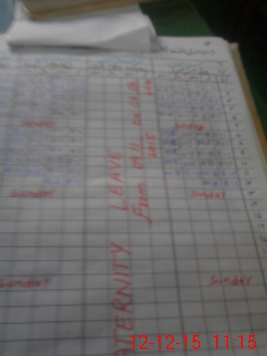 | Leave | Duty | Absent | Maternity | Medical | Ex- Pak |
