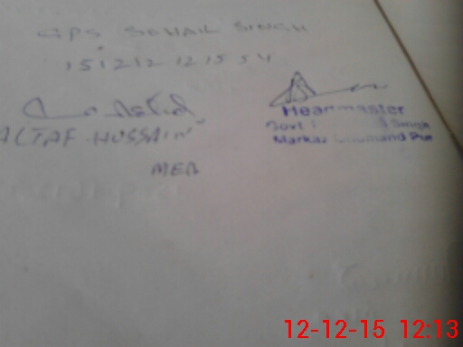| Monitoring Date: 12-12-2015 | Start Time: 12-12-2015 11:29 AM | End Time: 12-12-2015 12:14 PM | Name of MEA: Al**** Hu**** BN**** | |