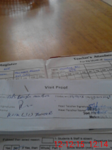 | Attendance Register | Head Teacher | MEA with School | Visit Proof |