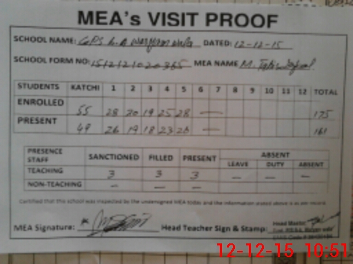 | Attendance Register | Head Teacher | MEA with School | Visit Proof |