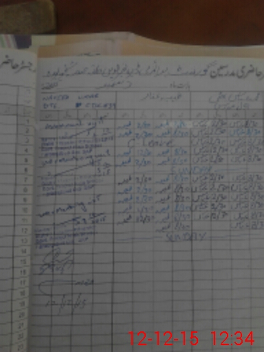 | CNIC | Full Name | Designation | R/C | Absence During Last Calender Month |