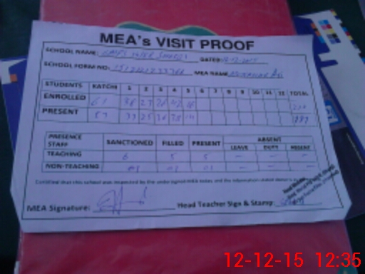 | Attendance Register | Head Teacher | MEA with School | Visit Proof |