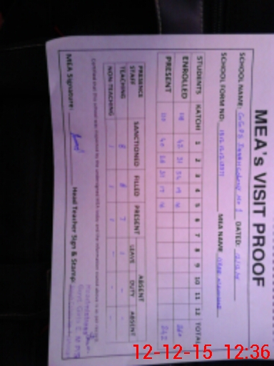 | Monitoring Date: 12-12-2015 | Start Time: 12-12-2015 11:57 AM | End Time: 12-12-2015 12:55 PM | Name of MEA: Is**** Me**** | |