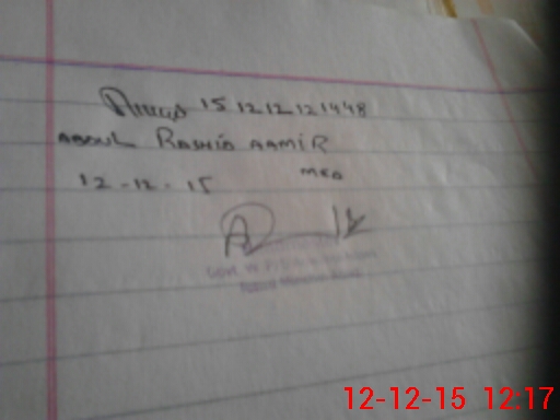 | Monitoring Date: 12-12-2015 | Start Time: 12-12-2015 12:05 PM | End Time: 12-12-2015 12:31 PM | Name of MEA: Ab**** Ra**** Am**** BN**** 28 | |