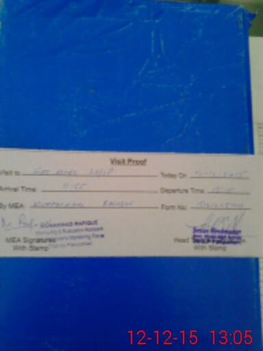 | Monitoring Date: 12-12-2015 | Start Time: 12-12-2015 11:48 AM | End Time: 12-12-2015 01:12 PM | Name of MEA: Mu**** Ra**** | |