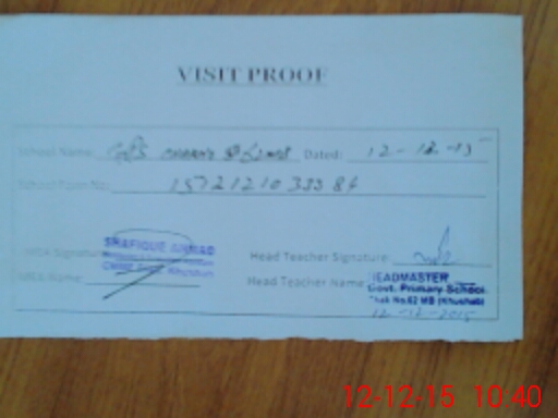 | Attendance Register | Head Teacher | MEA with School | Visit Proof |