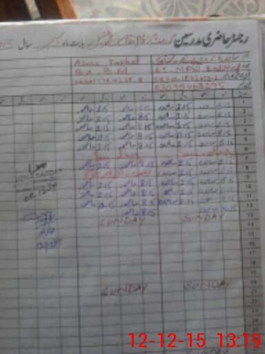 | CNIC | Full Name | Designation | R/C | Absence During Last Calender Month |