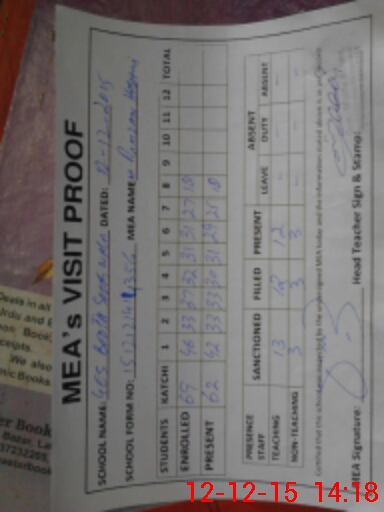 | Attendance Register | Head Teacher | MEA with School | Visit Proof |