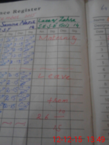 | Leave | Duty | Absent | Maternity | Medical | Ex- Pak |