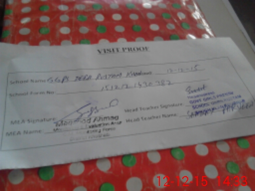 | Attendance Register | Head Teacher | MEA with School | Visit Proof |
