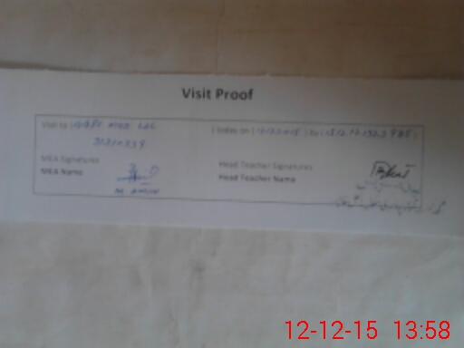 | Attendance Register | Head Teacher | MEA with School | Visit Proof |