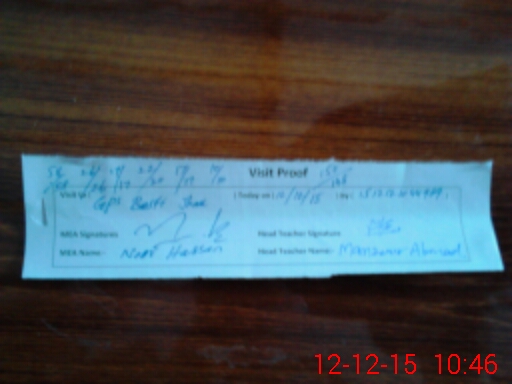 | Attendance Register | Head Teacher | MEA with School | Visit Proof |