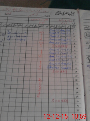 | CNIC | Full Name | Designation | R/C | Absence During Last Calender Month |