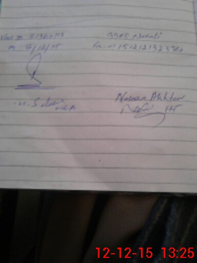 | Monitoring Date: 12-12-2015 | Start Time: 12-12-2015 12:45 PM | End Time: 12-12-2015 01:30 PM | Name of MEA: Re**** Mu**** Za**** | |