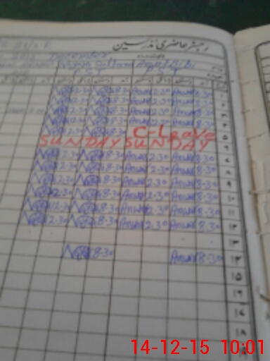 | CNIC | Full Name | Designation | R/C | Absence During Last Calender Month |