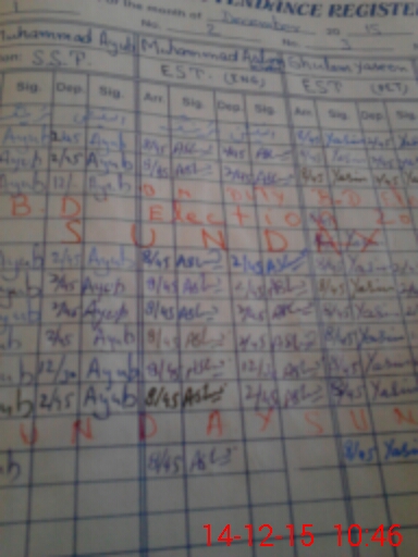 | CNIC | Full Name | Designation | R/C | Absence During Last Calender Month |