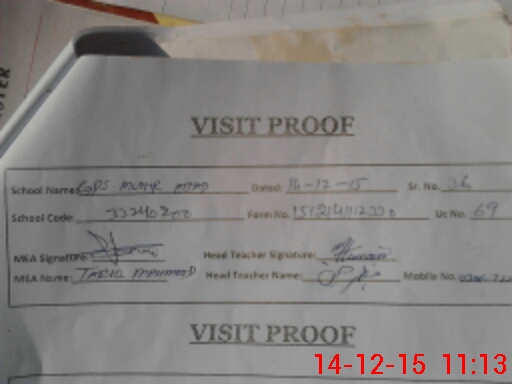 | Attendance Register | Head Teacher | MEA with School | Visit Proof |