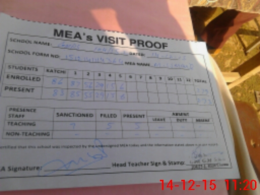 | Attendance Register | Head Teacher | MEA with School | Visit Proof |