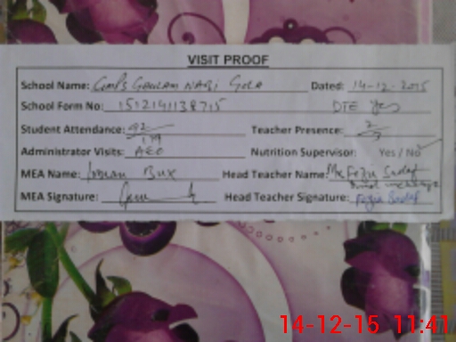 | EMIS Code: 32430182 | Name of School: GGPS GHULAM NABI GOLA | |||