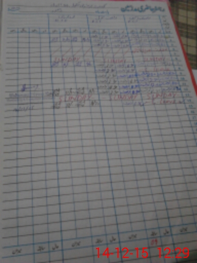 | CNIC | Full Name | Designation | R/C | Absence During Last Calender Month |