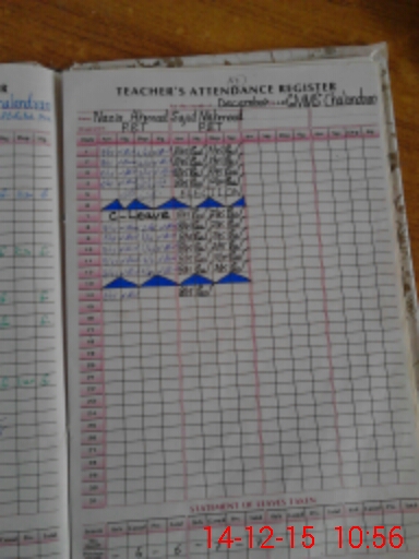 | CNIC | Full Name | Designation | R/C | Absence During Last Calender Month |