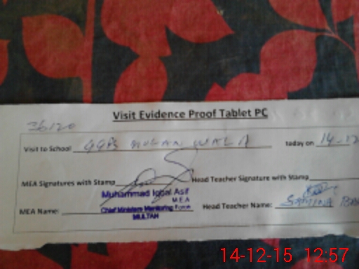 | EMIS Code: 36120210 | Name of School: GGPS MULLAN WALA SHUJABAD | |||