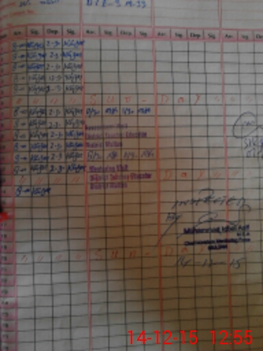 | Monitoring Date: 14-12-2015 | Start Time: 14-12-2015 12:33 PM | End Time: 14-12-2015 01:00 PM | Name of MEA: MU**** IQ**** AS**** | |