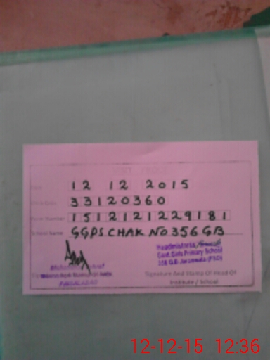 | EMIS Code: 33120360 | Name of School: GGPS CHAK 356 GB JARANWALA | |||
