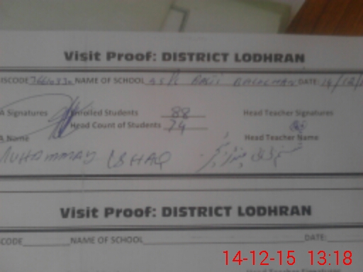 | Attendance Register | Head Teacher | MEA with School | Visit Proof |